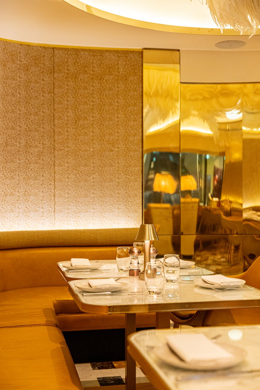 Bring your closest friends and family and settle into this gorgeously ‘feathered’ semi-private dining room offering a cosseted, epicurean experience. From its organic tangle of lace and feathered chandeliers and tabletops, to the colourful nod to the golden duck bill through the yellow upholstery and wall cladding – it’s a room designed for comfort and memory-making, accommodating 22 guests for a seated event and 30 for standing.